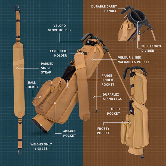 The Loma only weighs an astonishing 1.95lbs. This golf bag is as light as a feather!