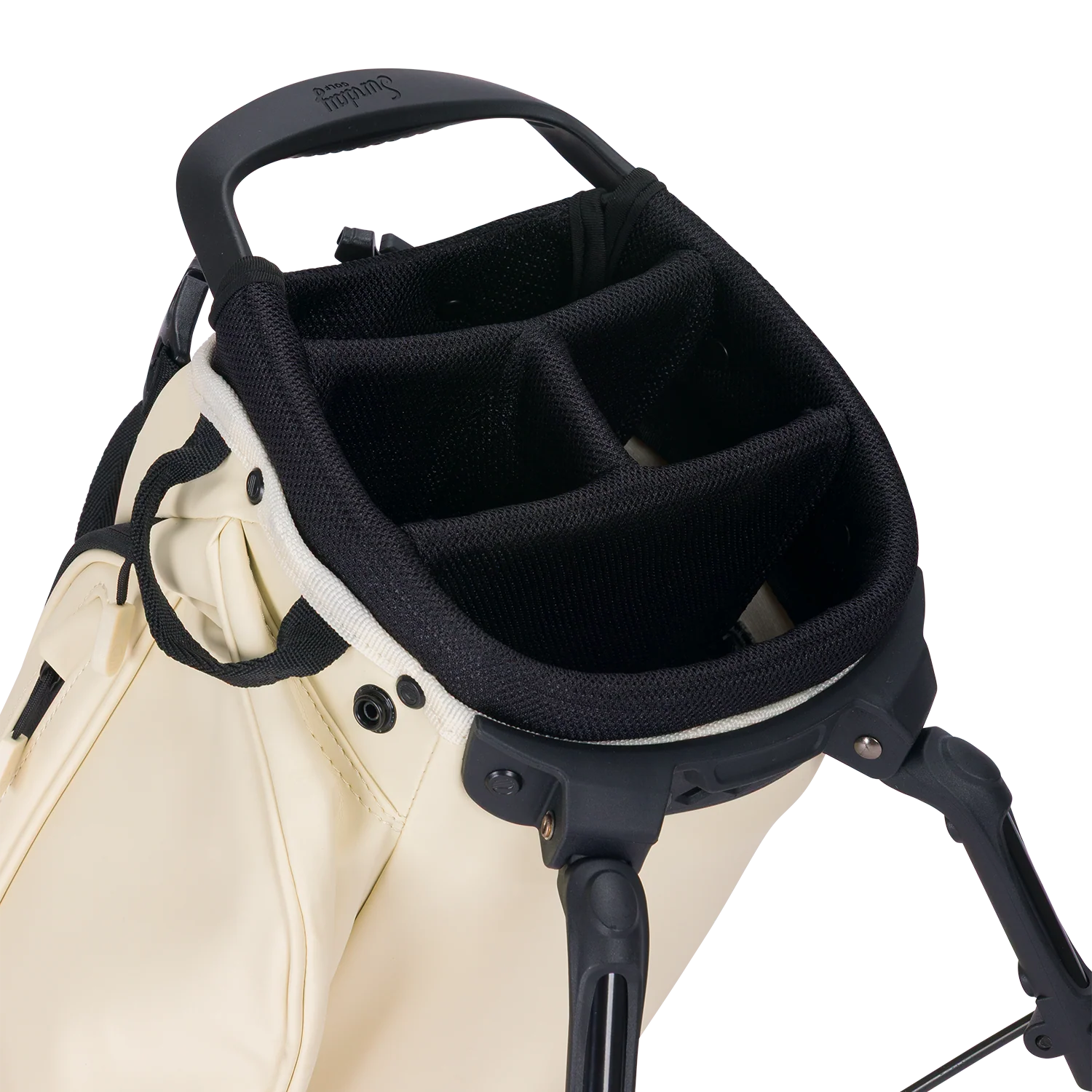 The Vegan Leather Golf Bag by Sunday Golf is more than just a bag; it’s a statement. Crafted from premium vegan leather, this bag combines eco-friendly innovation with timeless elegance. Its minimalist white design makes it a standout piece on any course, while its durable construction ensures it can handle the rigors of your game. With a focus on comfort, this bag is lightweight yet spacious, offering all the room you need for your gear without weighing you down. Easy to clean and maintain, this bag is the perfect choice for golfers who value both style and sustainability.