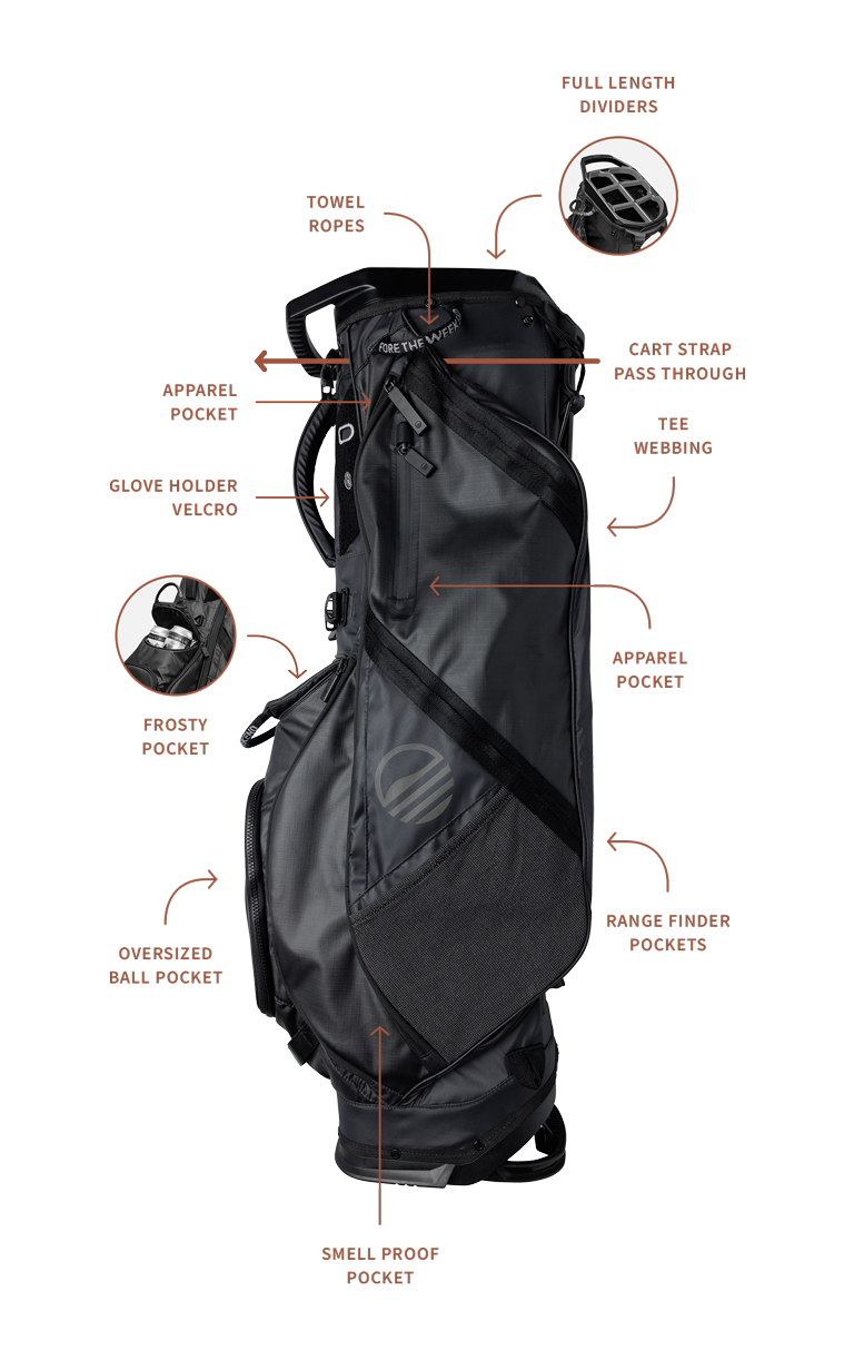 Weighing only 5.5 lbs it can hold up to 14 clubs, offering a lightweight and premium solution compared to most stand bags.