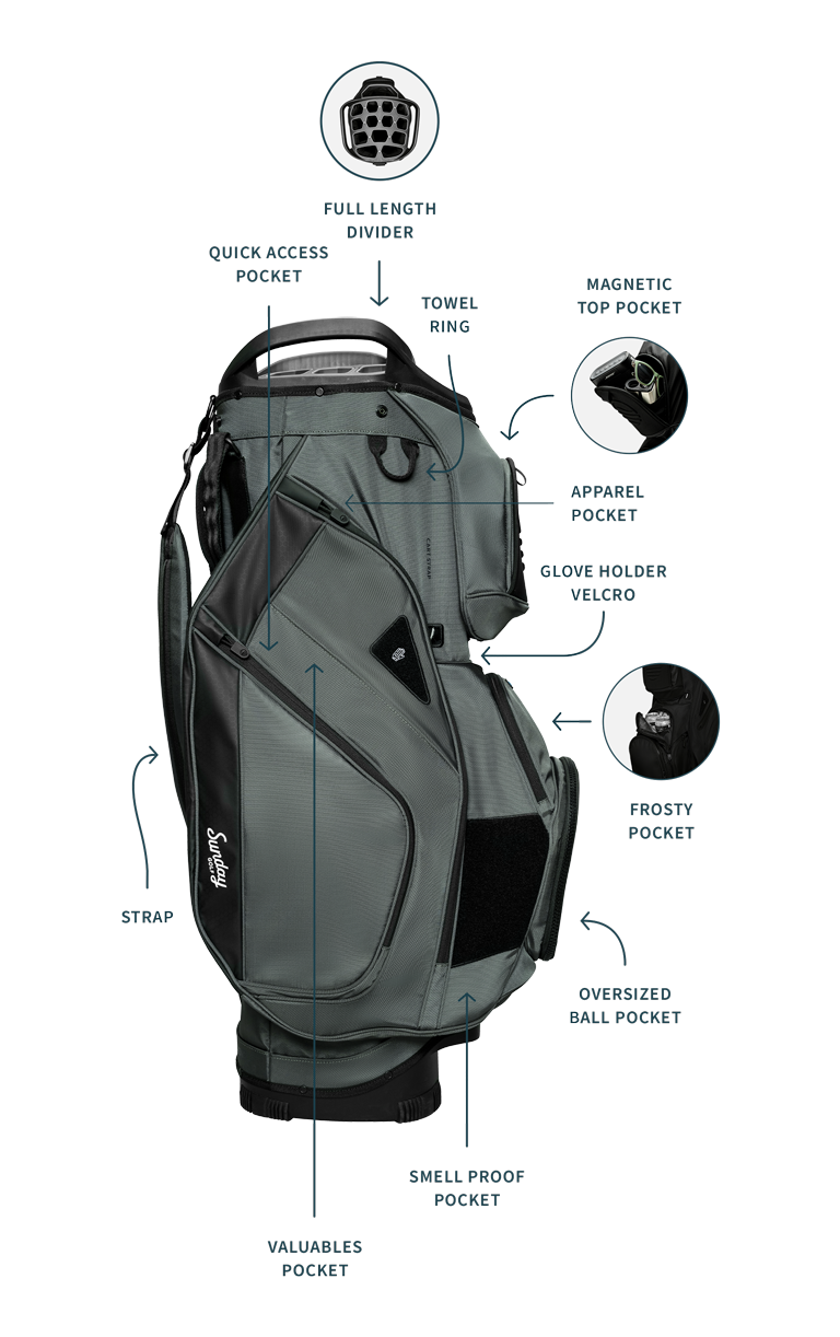 It’s best to use the Big Rig on the back of a golf cart or on a push cart. As it’s a heavier bag with a single carry strap, we recommend one of our lighter carry bags instead for walking rounds.